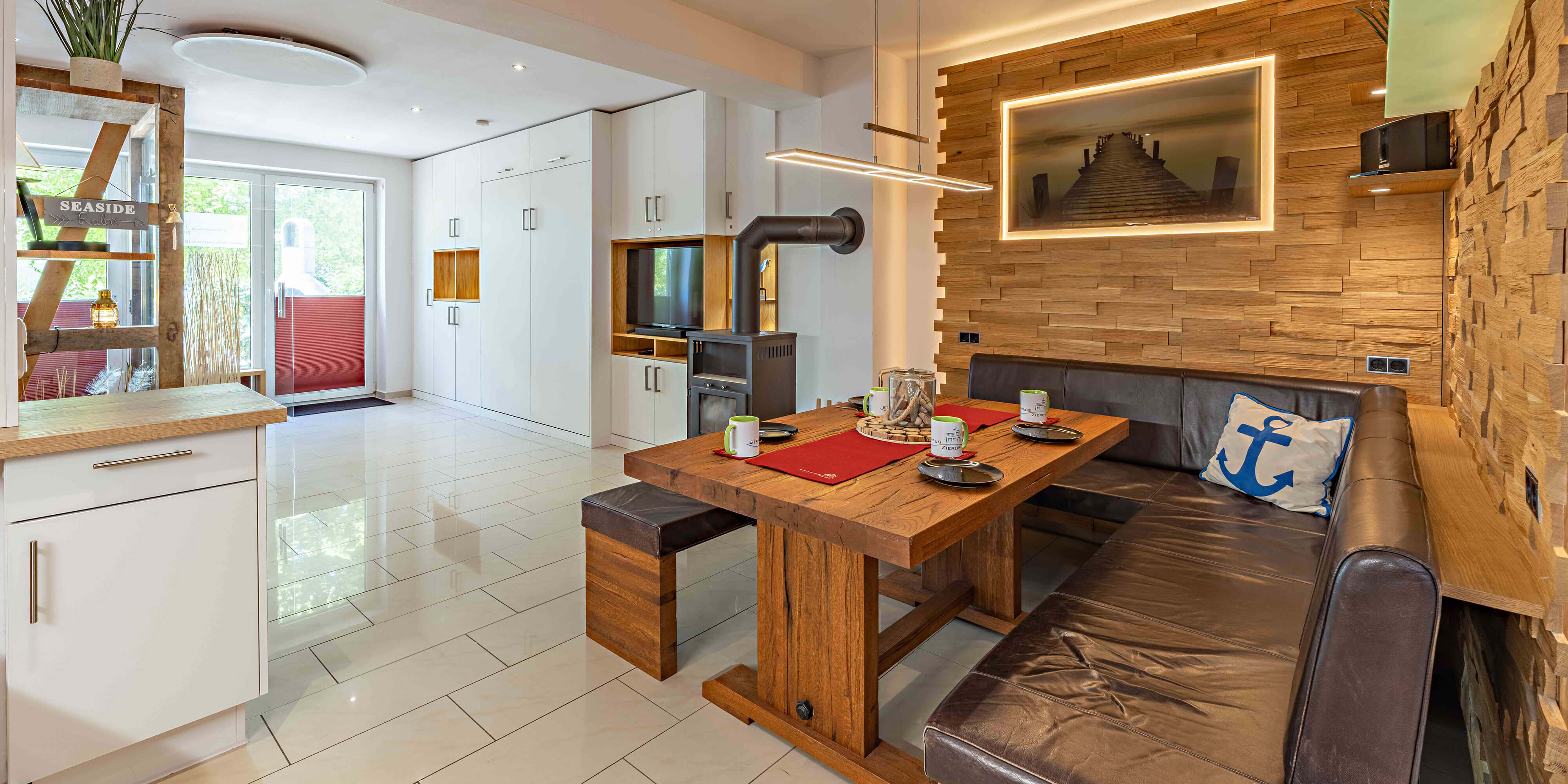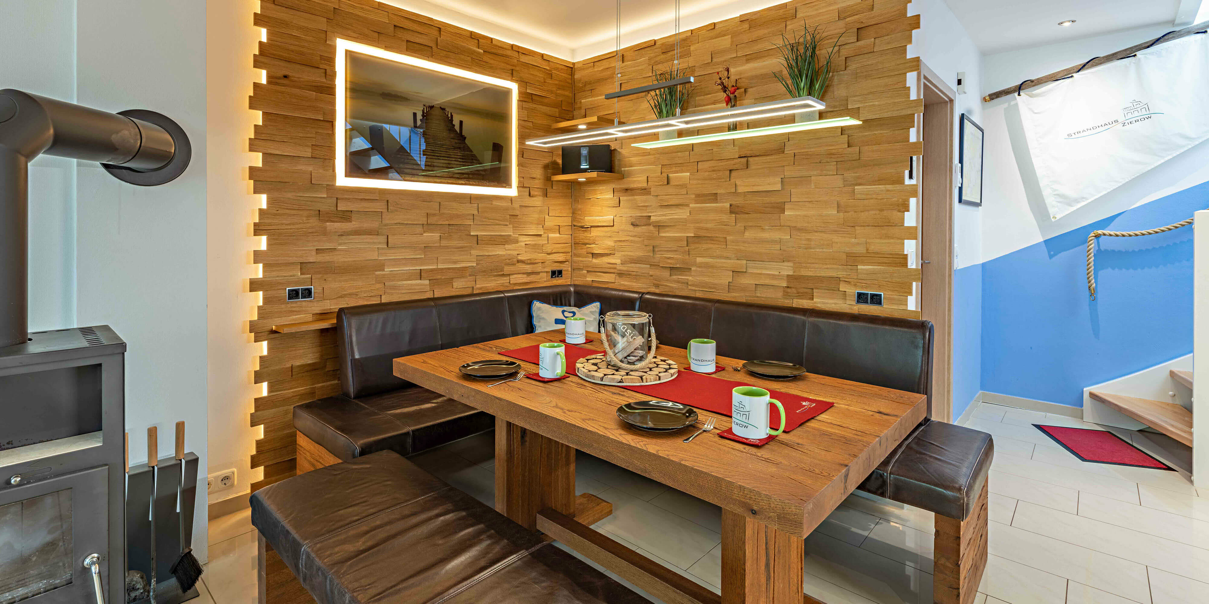 Erleben Sie die ruhige Schönheit der Ostsee bei Spaziergängen entlang der Steilküste zum Fliemstorfer Huk. Anschließend lädt der gemütliche Kamin im Wohnzimmer zum Aufwärmen ein.